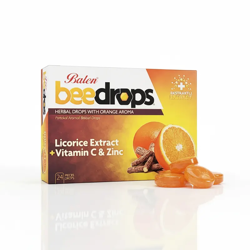 Beedrops Orange Flavored Herbal Drops provide quick relief for sore throats with a blend of Licorice Extract, Vitamin C, and Zinc. Formulated for rapid and lasting comfort, these lozenges are ideal for soothing throat discomfort from colds, allergies, or irritation. Enjoy fast-acting relief throughout the day, with the option to consume 1 to 4 lozenges daily based on your needs. Incorporate Beedrops into your routine for effective throat health support.